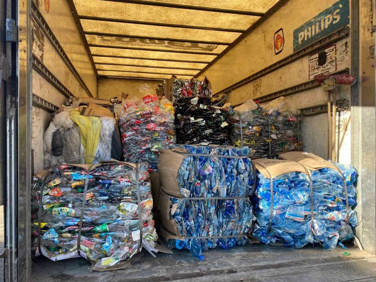 All materials were collected by residents, sorted, and compacted before being transported for recycling.